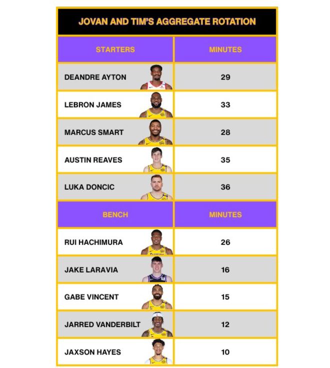 北京時(shí)間10月8日,湖人記者約什-布哈在個(gè)人的播客節(jié)目中談到了25-26賽季潛在的湖人10人輪換時(shí)間,他做出了多鐘的分析安排,我覺(jué)得比較好的是:艾頓29分鐘、詹姆斯33分鐘、斯馬特28分鐘、里夫斯35分鐘、東契奇36分鐘、八村壘26分鐘、拉拉維亞16分鐘、文森特15分鐘、范德比爾特12分鐘,海斯10分鐘。